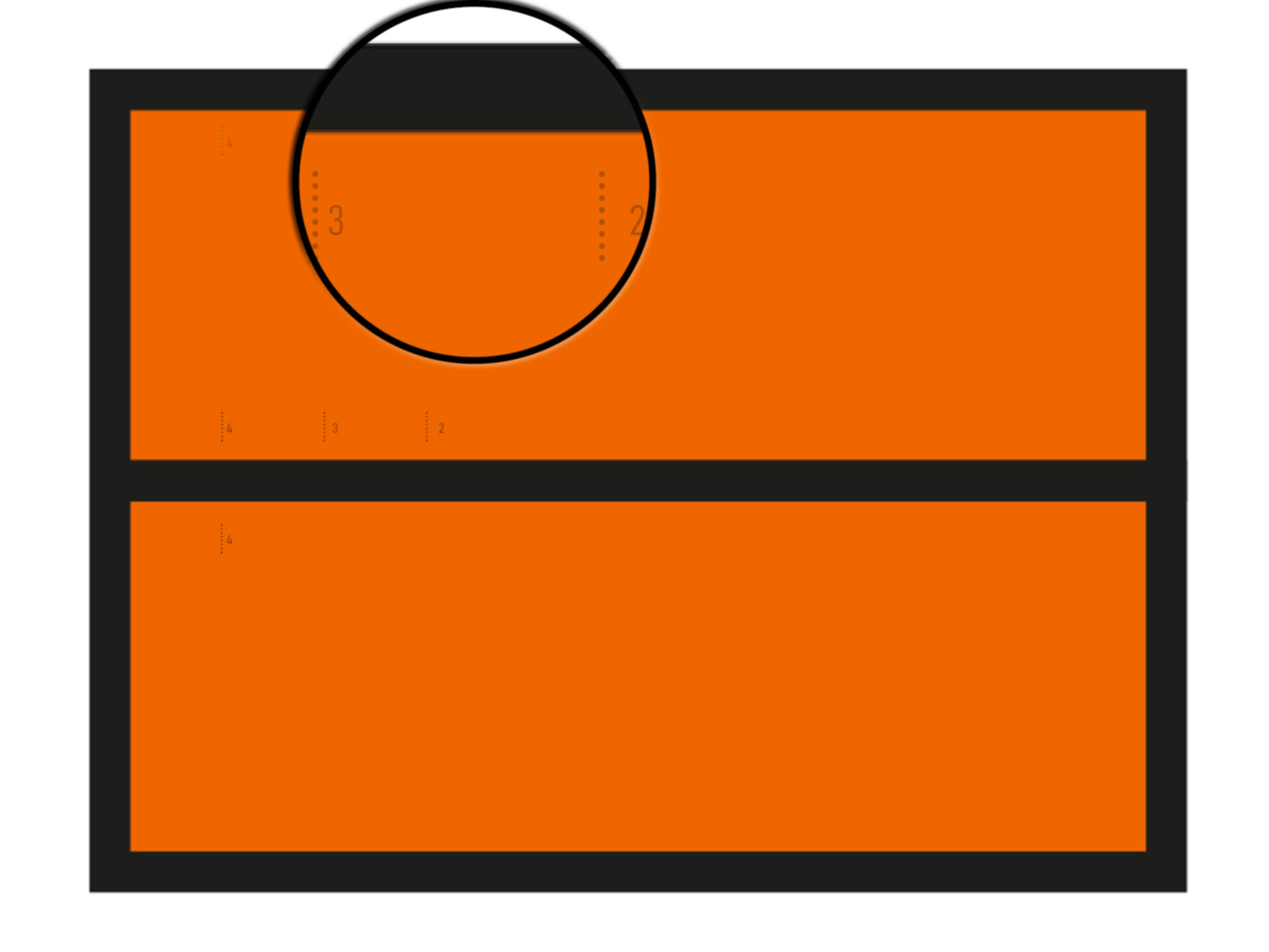 Die "Orange Warntafel mit vorgedruckter Einzelziffern-Platzierungshilfe" verfügt über fein gedruckte Markierungen, die Ihnen den idealen Startpunkt für die Platzierung der Ziffern vorgeben. Egal, ob Sie 2, 3 oder 4 Ziffern/Zeichen benötigen, folgen Sie einfach den vorgedruckten Indikatoren und bringen Sie die Ziffern mühelos an der richtigen Stelle an. Die Markierungen sind beim Anbringen auf kurze Distanz deutlich sichtbar und helfen Ihnen dabei, ein perfektes Ergebnis zu erzielen, ohne das Erscheinungsbild oder die Einhaltung der ADR-Vorschriften zu beeinträchtigen.